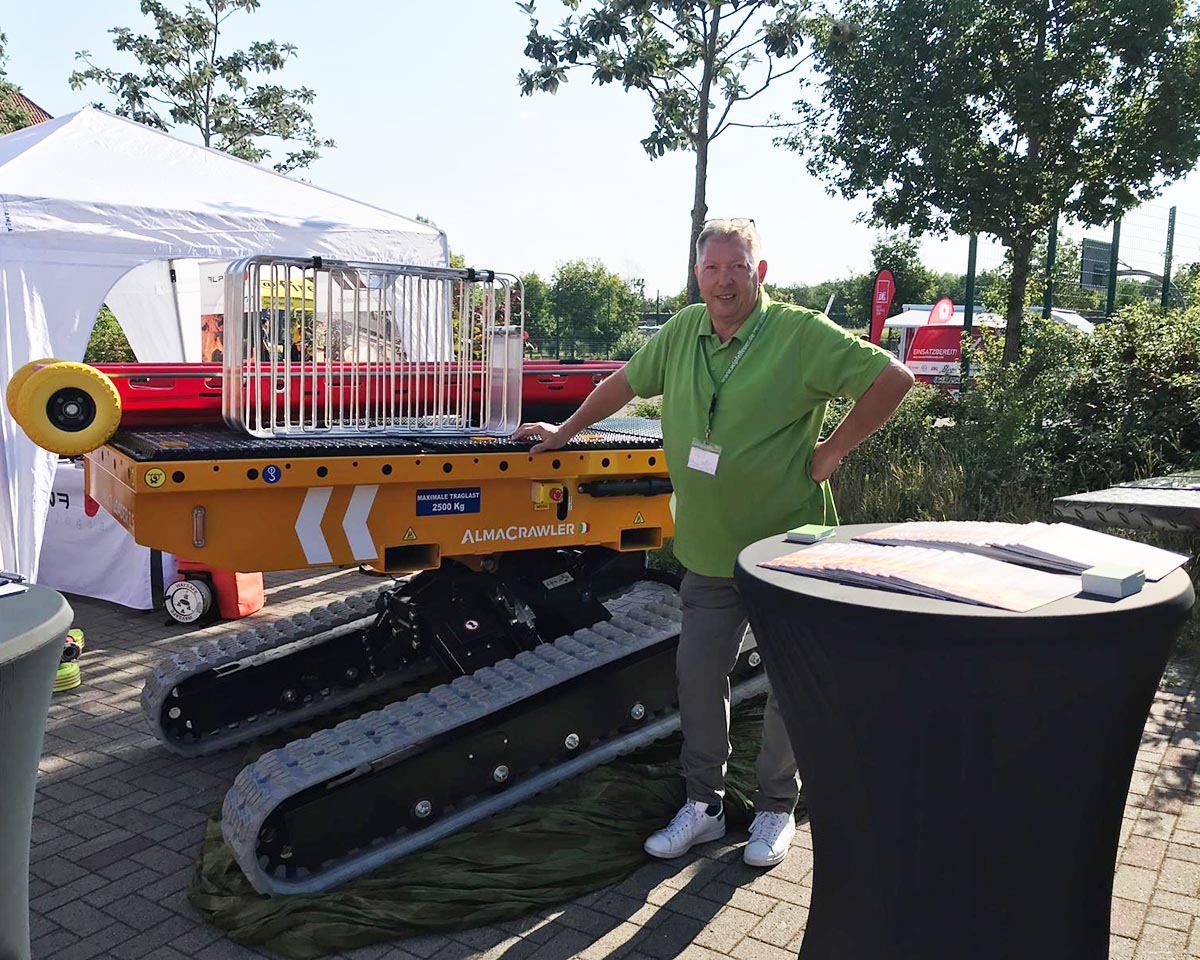 Wir haben ein leichtes aber stabiles Hubgerüst entwickelt , mit dem der Bus nach über 50 Jahren aus seinem Waldbett gehoben wurde. Dann haben wir unsere ferngesteuerte Transportraupe unter das Fahrgestell verbracht, den Bus sicher verzurrt und aus dem unzugänglichen Waldstück gefahren. Für den finalen Abtransport per Tieflader wurde der 5 to schwere Oldtimer an der ersten für Lkw zugänglichen Straße noch einmal umgeladen. Die gesamte Aktion wurde Mitte September 2018 in zwei Tagen durchgeführt.